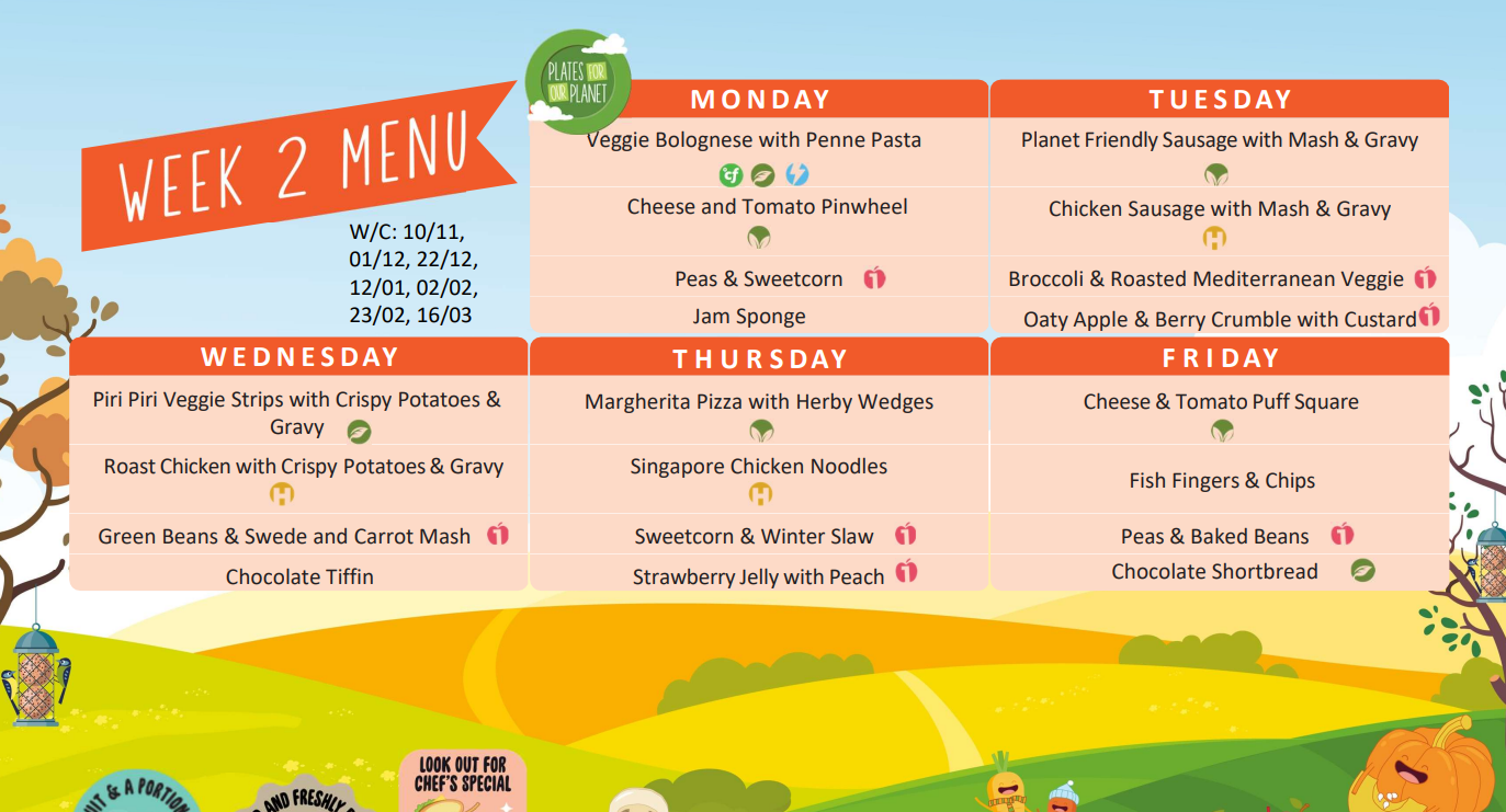 Our meals are cooked on site by our caterers, ISS. Parents pre-order meals in advance via the